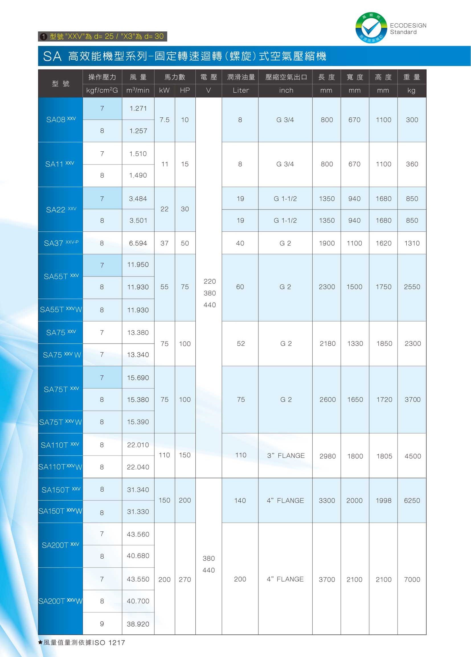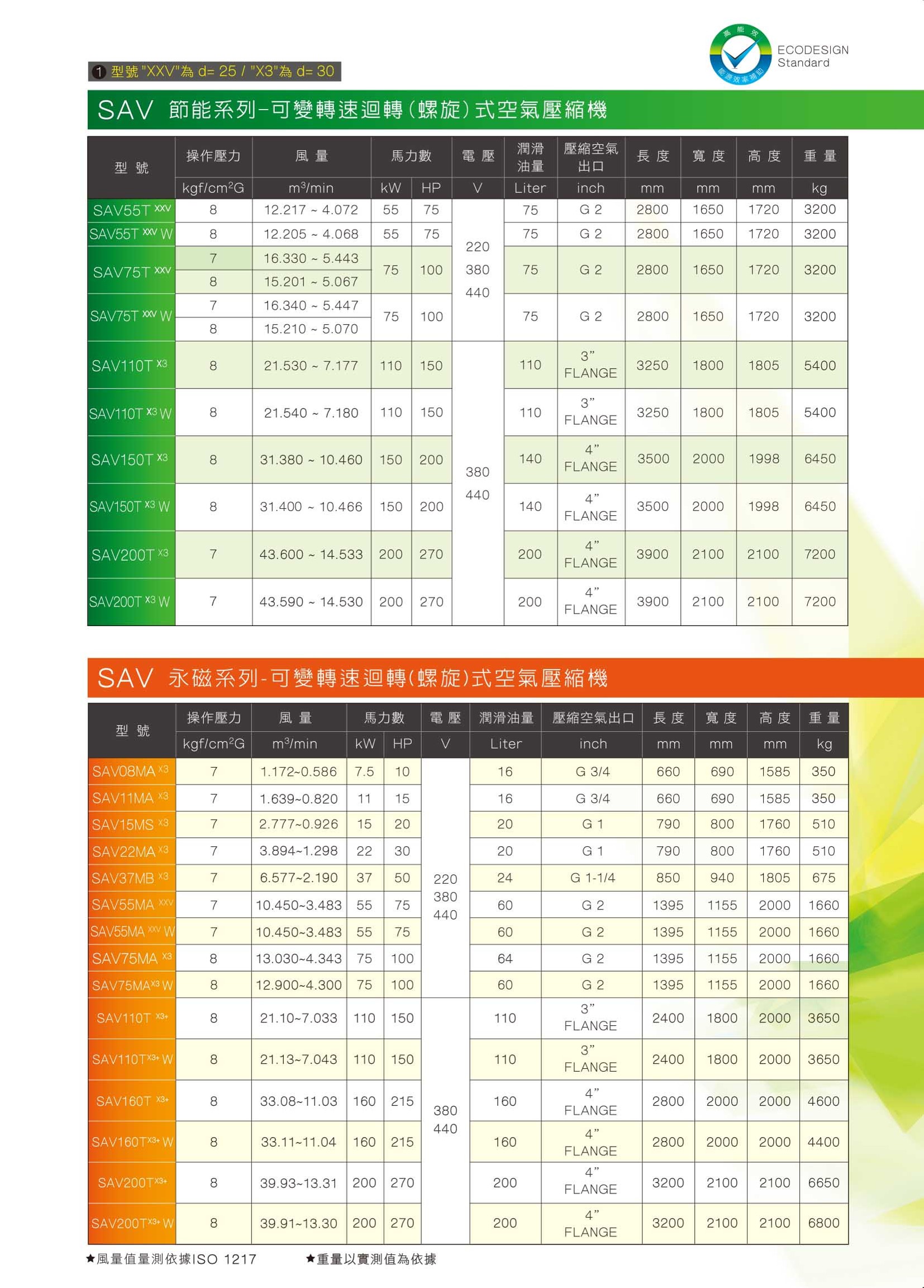 馬力範圍 : 7.5 - 110 kW - 50/60 Hz 10 - 150 HP - 50/60 Hz